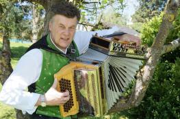 Bereits vier Jahrzehnte steht er mit Harmonika und Keyboard auf der Bühne, singt und spielt sich in die Herzen der Zuhörer.
